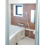設備はLIXILリノビオフィット、壁は部屋全体のデザインにあわせて落ち着いた雰囲気の木目調をご提案。