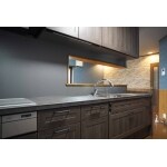 キッチンはLIXILの最上位機種「リシェルSI」。 熱や汚れに強いセラミック製の天板を採用されました。 熱に強いため、高温のフライパンを直接置いても変色や変形がなく、汚れもつきにくいです。 重厚感があり、デザイン性にも優れているため、インテリアとしても部屋のグレードアップにつながります。 水栓は手をかざすだけで水が出る「ハンズフリー水栓」を採用されるなど、贅沢な仕様です。