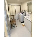 サイドキャビネットを撤去し、洗面台を大きくすることで使いやすく掃除もしやすいフラットなデザインをご提案しました。