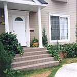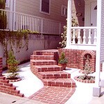 お客様のこだわりの赤レンガはもちろん手摺子も取り付け輸入住宅に合うアプローチにしあげました。トイレは狭いところを有効に使用できるようご提案しました。