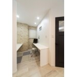 キッチンをメインステージへもっていくため配置をガラリと変えました。無駄に広かった玄関ホールを最小限にし、LDKをスタディコーナーを備えた大空間にしました。施主様より階段の壁を抜きたいとのご要望を頂き壁の下の壁を抜いた事で、ぐるりと回遊出来る導線の間取りとなりました。加古川店のトイレを気に入って頂き、手洗いカウンターを備えた、広くカッコいいトイレになりました。