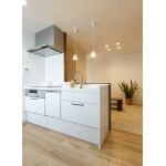 空間の真ん中にキッチンを設置することで、部屋を出ればいつでも家族の顔をみられ、コミュニケーションをより一層深くとれるようになりました。