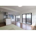 視界が抜ける開放的なLDK。光と風がたっぷり入り猫ちゃん達の日向ぼっこにもぴったり。 これからは畳に座って猫ちゃんの眺めるのも楽しみ1つとなりそうです。