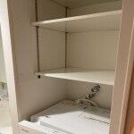 洗濯機置き場の上部に天井までの高さ調節が可能な棚板を設置致しました。