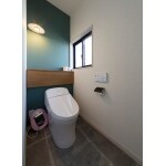 和風の趣がある外装は、テーマでもあるインダストリアル風の角波を使用し、カッコよく! 内部にはガラッとテイストをかえ、優しさのあるインダストリアル風に! アイアンで入れた窓と紺色のドアがポイントです!