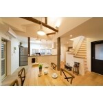 ・開放感のあるLDKに、ナチュラルテイストを際立たせる見せ梁と見せ筋交い。 ・洗面台は最後まで造作洗面に ・窓枠や笠木は既製品ではなく足場板を仕様。古木の家具に合う空間にしました。