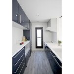 キッチンにはダークブルーの扉カラーをチョイスし高級感をプラスしました。