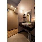 素材やお色にこだわった全体的にモダンでシックな空間に。照明にこだわった造作洗面化粧台に仕上がりました。