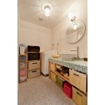 朝の気分が上がる!アクセントタイルを取り入れた明るい洗面としグリーンのアクセントタイルでガラリと変わった雰囲気にしました。 明るい色のタイルで、忙しい朝の気分も明るくしてくれます。しっかりとおしゃれさを取り入れながら、洗面下には収納棚もしっかり設置し収納面も問題ないです。