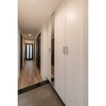 天井まである大容量の収納力の有る玄関収納はホワイトアッシュ柄で、暗くなりがちな玄関から廊下を明るい印象に、お客様もおもてなしできる、明るく清潔感のある玄関に生まれ変わりました。