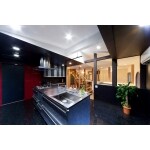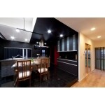 トーヨーキッチンに似合うブラック空間。各所に施されたライティングは、光と陰影のメリハリが生まれるようなドラマティックな雰囲気の演出性が巧みな空間を演出しています。