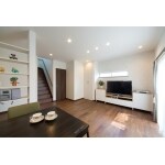 団らんしにくかったリビングをキッチンと反転し、廊下やホールをLDKに取り込み、広々としたLDKにしました。 細長い間取りにキッチンとダイニングテーブルを配置するために、ダイニングテーブルを造作しました。 また、凹凸のあるお家の形を整え、収納を増やしました。