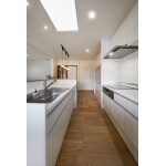 壁付けから二型へ配置を変更したキッチンには、事前にサイズを合わせたPanasonic 耐水カウンターを取り付けました。 ダイニングテーブルをキッチンと繋げたことによって、料理の配膳や後片付けなどの効率がよくなり日々の家事動線が以前より楽になりました。 キッチンの背面にはタイル調のクロスを貼り、ペンダントライトは海外から取り寄せたこだわりの商品です。 リフォーム前より奥様がイメージされていたカントリー調の空間に仕上がり、大変ご満足いただけました。