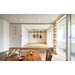 66平方メートルの1LDKからそれぞれのプライベートスペースと収納スペースが欲しいとのご要望にお応えするべく、 デザイナーが提案したのは「高さを利用したプランニング」です。 お子さまふたりの個室は、ベッドスペースをまるで二段ベッドのように上下で仕切り、間仕切り壁にオリジナルの回転窓をつけました。 光と風を程よく通し、プライバシーを邪魔しません。 奥さまの趣味コーナーには、娘さまの部屋側にある間仕切り壁に上げ下げ窓を造作。 仲良しの母娘で会話が楽しめるように設計しました。 また、リビングダイニングの一部には小上がりを造作。ご夫婦の寝室を兼ねているため、引戸で仕切れるようにしてあります。 小上がりの下にはたっぷりの収納スペースを確保して、ご家族の要望を満たす暮らしやすい住まいとなりました。
