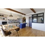 限られたスペースの中から、お風呂の脱衣・洗面室を兼ねたサニタリーに、室内干しのランドリーコーナーを設けることをご提案。 バルコニーへもアクセス出来るため、天日干しとの切り替えも楽にできます。 サニタリーと隣接するLDKとの間仕切り壁は上部に換気の窓と回遊できる通り道もあり、湿気が籠ることもありません。 サニタリーへの引戸を閉めるとLDKはいつもスッキリ!家族が楽しく団欒できる空間に変貌します。 「劇的に洗濯物の片づけが楽になりました!LDKもカフェみたい、とママ友にも好評です」と奥様にもお喜びいただけました。