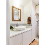 タイルがアクセントになった造作洗面化粧台をご提案させていただきました。