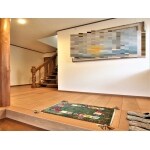ダイニングキッチンと和室(リビング)が長い廊下で隔てられてしまっていたので、廊下を短くして一空間にすると同時に、バリアフリーにしました。ただ耐震性を0.3から0.7にアップさせるために残さないといけない柱と筋交いがあったので、それらを活かしてパソコンコーナーと反対側に収納スペースをつくりました。残す柱と筋交いは研磨・埋木をして塗装をし、家を守ってきてくれた風合いを活かした魅せる柱にしました。お風呂は足の延ばせるサイズにし、その分面積が小さくなった洗面脱衣室は、階段下収納内を見直すことで収納力を維持。壁はしっくいや漆喰風クロスをメインにして色味を抑え、飾る絵画が映えるようにしました。