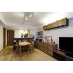 ・キッチンカウンター下の棚板収納 ・畳が丘の収納 ・キュビオス上部の間接照明 ・壁面大容量のクローゼット収納 ・LDK一面の広い面積のエコカラット ・キッチンタイルのおしゃれな張り替え ・洗面台のねこちゃんトイレ空間 ・トイレのクロス貼り分け