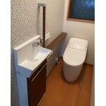 1階トイレ ・LIXIL:プレアスLS(白色) へ交換。 ・LIXIL:コフレルワイド(手洗い器) 新設。 ・LIXIL:手すり・カウンターセット 新設。 ・壁紙(リフォーム用防カビ・抗菌仕様)へ交換。 プレアスはタンクレスに見えてタンク付きです。 何かの時には安心です。