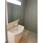 洗面台を入れ替え3面鏡の収納棚になり、収納量が増えました。シャワー式の水栓に変更し、お手入れも楽に。クロスとフロアタイルの貼替を行いました。