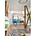 和室と廊下を取り込んで広いLDKを実現させ、 キッチンは奥から大移動させて、Kさまの大好きなターコイズブルーのタイルを施工しました。 ご親戚やご友人が遊びに来た時に、ご夫婦そろってホストになっても動きやすい、キッチンがお家の中心となったレイアウトです。 集めていらしたカラフルなタイルはキッチンカウンターの内側に。 またDIYが得意なKさまお手製のテーブルなどがマッチした、アジアンテイストでリゾート感が味わえるお住まいとなりました。