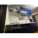 人造大理石のキッチンの中でもカラーが豊富なもの。また、お掃除がしやすいように、キッチンだけでなく扉も汚れが付きにくいものをご提案させていただきました。