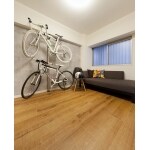 無垢フローリングに合うようカウンターや飾り棚はヴィンテージ風の仕上がりに。 ご主人様の趣味のお部屋は自転車に合うよう無垢風のフロアタイルとコンクリート調のクロスをご提案。 全体的に味わいのある家具やおしゃれな小物が映える空間をご提案させていただきました。