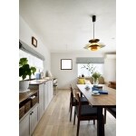 自然素材を使われたお客さま邸は、ホワイトが占める割合が高い爽やかな佇まいです。 そこにダイニングテーブルや造作家具のつまみに使用されているブラックで引き締め、ファブリックにグリーンを用いることで、家族みんながリラックスして寛げる優しい空間となりました。 バルコニーからの光に照らされて、飾られたグリーンの葉もいっそう瑞々しく輝いています。