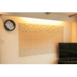 息子さん世帯のLDKはキッチンスペースに大きなパントリーを作り、スッキリ収納ができました。また、天井には、付け梁、TV背面にはエコカラットデザイン貼り、間接照明も入れて、モダンな落ち着いた空間の完成です。キッチンカウンター側面は、石張りデザインに。室内で感じる自然のイメージを調和させました。