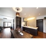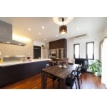オープンな対面キッチンで、お母様、奥様そして時にはお嬢様とも一緒に料理ができる広々としたキッチンスペースに仕上がりました。 無垢フローリングと調和のとれた照明、家具、カーテンといったトータルコーディネートが見どころです!