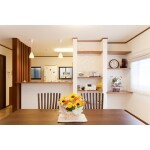 1階部分の全体的な間取り変更。 要所要所にこだわりの仕上げを施しました。 間取り変更に伴う、構造体の流用と補強で、家の負担を極力軽減しました。