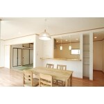 全体的にナチュラルテイストをご希望されていたので薄いパーチ系等の色で合わせました。 キッチンは対面キッチンにし、カウンターを無垢の檜をクリア塗装で仕上げました。存在感抜群です。 耐震診断書に基づいて壁量をアップさせ構造にも配慮しました。