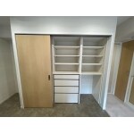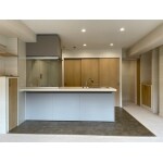 ペニンシュラ型キッチン キッチンと収納の間も広くなるよう移設 キッチン収納造作 ダウンライト新設