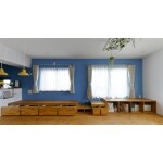 お客さまご希望のカリフォルニアスタイルに欠かすことができないのが、砂浜と海を連想させるホワイトとブルーのカラーリングです。 ベースの壁と天井には、石目調の質感が独特なホワイトカラーのエコクロスを施工。 更に、縦に長い部屋のカタチを活かして壁の1面をブルーに塗装しています。 各部屋へとつながるドアも同じ色で塗り、日当たりのよさも手伝って、砂浜に打ち寄せる波を思わせるLDKが完成しました。
