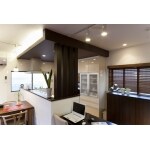 ・明るさ、使い勝手を考慮した対面キッチン ・既存の柱を流用した飾り柱 ・照明の明かりも楽しめる、キッチン上の上り天井 ・意外と重宝する、キッチン横造作カウンターテーブル