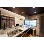 ・照明の明かりも楽しめる、キッチン上の上り天井 ・意外と重宝する、キッチン横造作カウンターテーブル