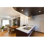 キッチンの天井には間接照明をつけ、とてもオシャレに仕上がりました。和室にはコーナー間仕切り建具を付けました。プリーツスクリーンも和室にピッタリです。外構は、何度も打ち合わせを繰り返しとてもオシャレに仕上がりました。少し渋めのタイルを使いポイントとしました。