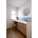 全面にタイルをあしらった洗面はゆったりとした広々空間に。
