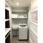 洗濯機上に収納物が見える棚を設置したことで、 取り出しやすくしまいやすい収納が実現しました。