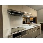 キッチン本体はお客様のほうでいろいろとみていただいていたので、キッチン廻りの納まりのほうを見させていただきました。 キッチン裏の収納は残す予定でしたので、キッチンパネルを施工させていただきました。