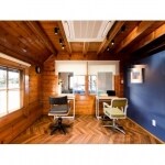 丸太組の為、内装にかなりの制限はありました。 仕事の動線と法令を確認しながら、施主様と共に作り上げた作品となりました。 限られた空間の中で、美容室として必要な面積や個室を考える事、そして鏡によってお客様がご自分のヘアスタイルを確認したり、背面が見える事などに配慮して色や照明の配光などを決定しました。