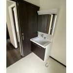 場所も変え、独立した洗面所に。洗面台もシックなカラーを選ぶことで雰囲気もかなり変わりました。