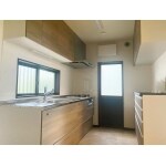 自動洗浄機能のレンジフードを採用しています。また、水栓は浄水器一体型の省エネ水栓をお選びいただきました。壁面はキッチンパネルに変え、清掃性よくすっきりと見えます。窓や勝手口は既存のままお使いいただきました。