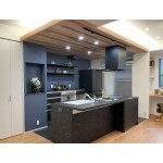 高級感のあるグラリオカウンターと、キッチンの床はラピスタイルフロアー。 抗菌仕様で水や汚れに強い素材でお手入れがとても簡単です。 左奥の扉はパントリーです。 要所要所でしまうことができる収納にして欲しいとご要望をいただいておりましたので、収納はたっぷりととらせていただきました。