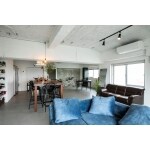 細かな仕切り壁を取り除き、キッチン・ダイニング・リビングでひとつの大空間に。 天井は仕上げず、あえてRCの構造柱や梁をみせたことにより、都会的な空間を演出しました。