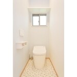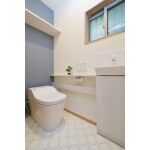 全自動のお掃除トイレは、ブルー系の爽やかな内装に