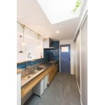 天窓付きの二階キッチンは、タイルを貼って外国風に
