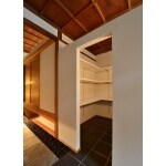 LDKと勝手口へそれぞれ続く通り土間を新設しました。既存のイナゴ天井や建具を生かしつつ、新たにタイルと玉砂利を敷きました。ご主人に最も気に入って頂いた自慢の玄関です。