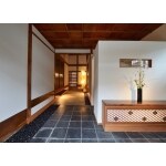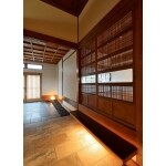 天井の格天井、床の玄昌石は生かしました。また、床の間で使われていた無垢のケヤキ板や和室で使われていた欄間を玄関正面の飾り棚廻りに転用しました。また、ご家族が増えてベビーカー等を入れられるようなSICを新設しました。