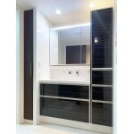 使いやすいW900へ交換。洗面台の横にトールキャビネットを設置。収納力が格段に上がりました。
